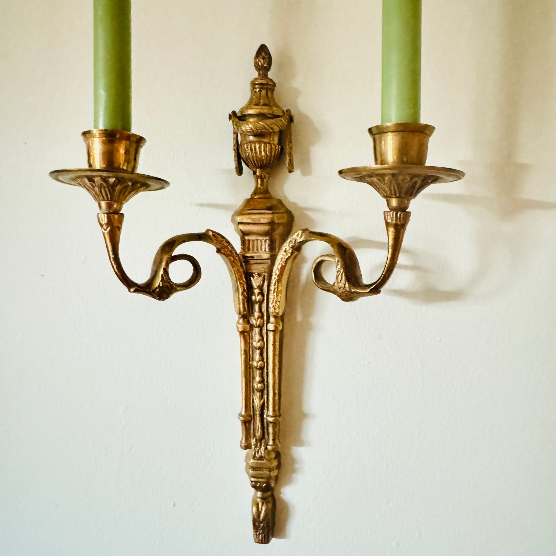 Brass Neoclassical Urn Topped 2 Arm Candle Wall Sconce