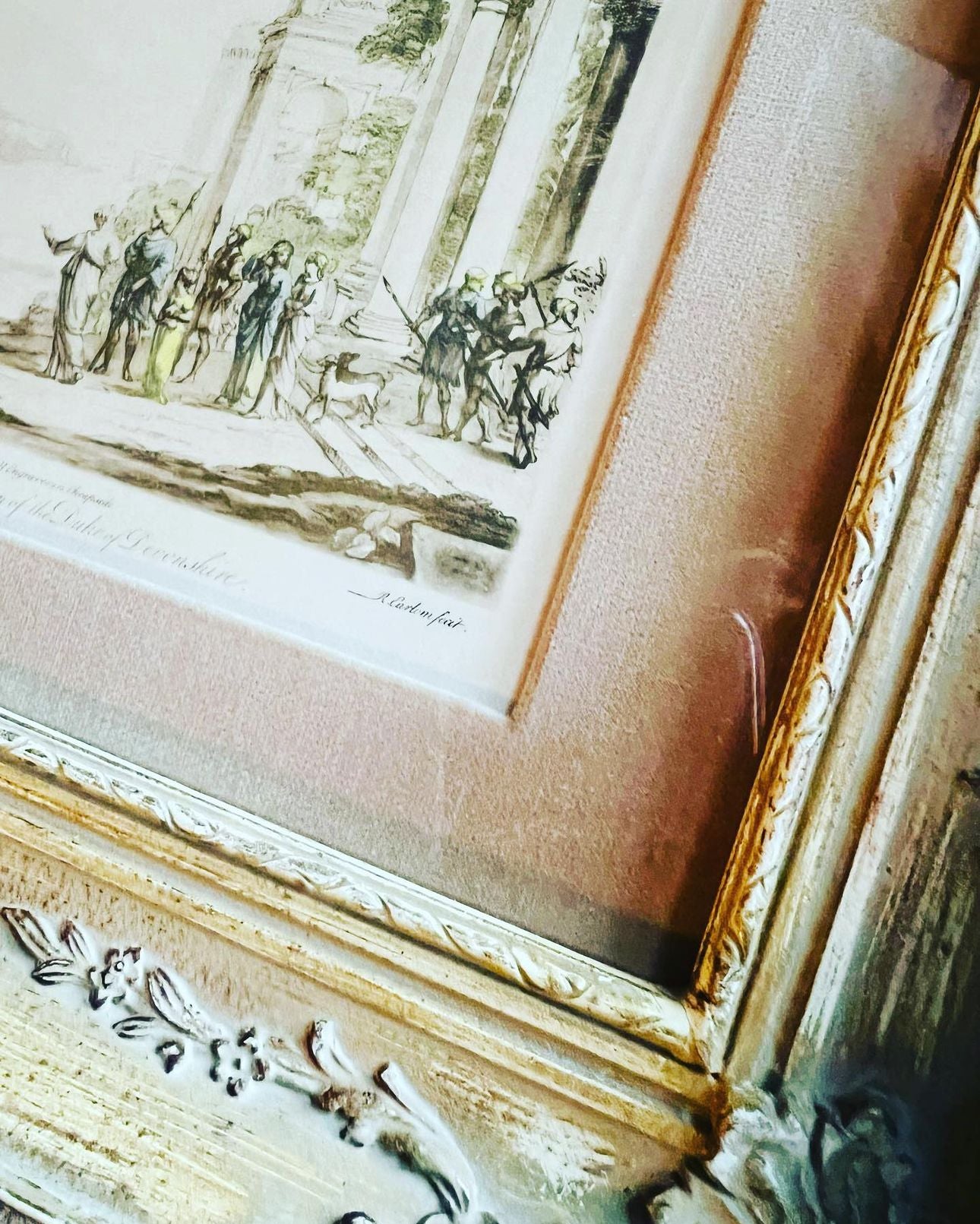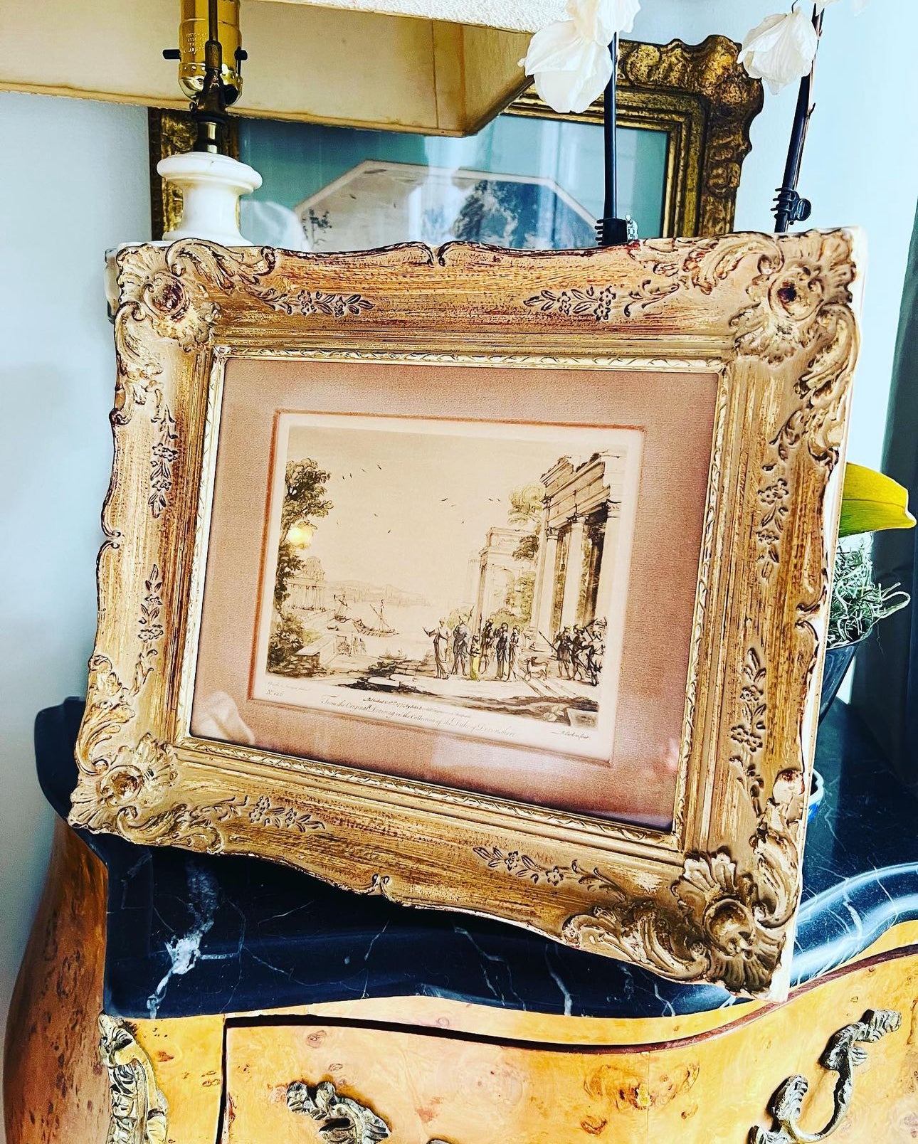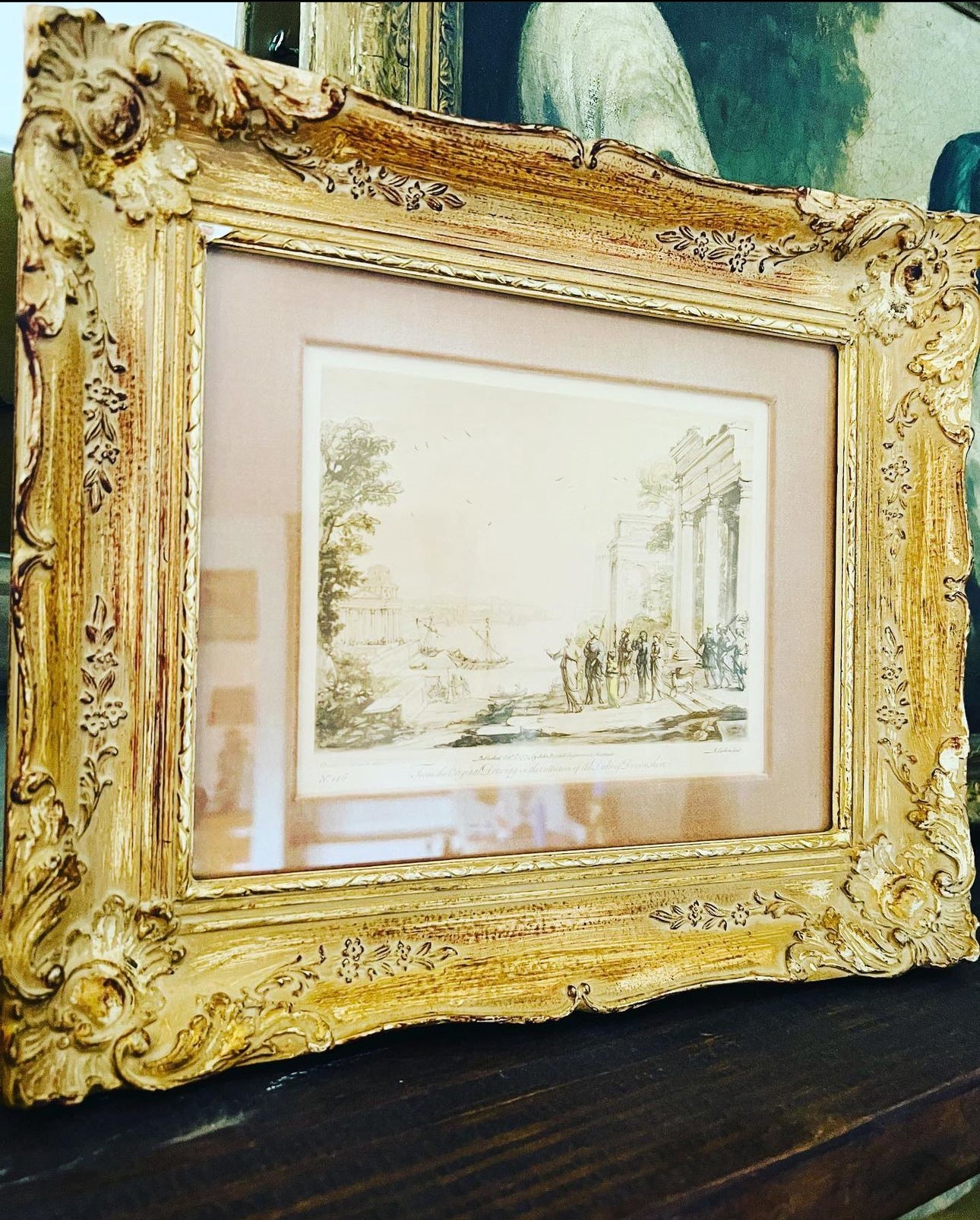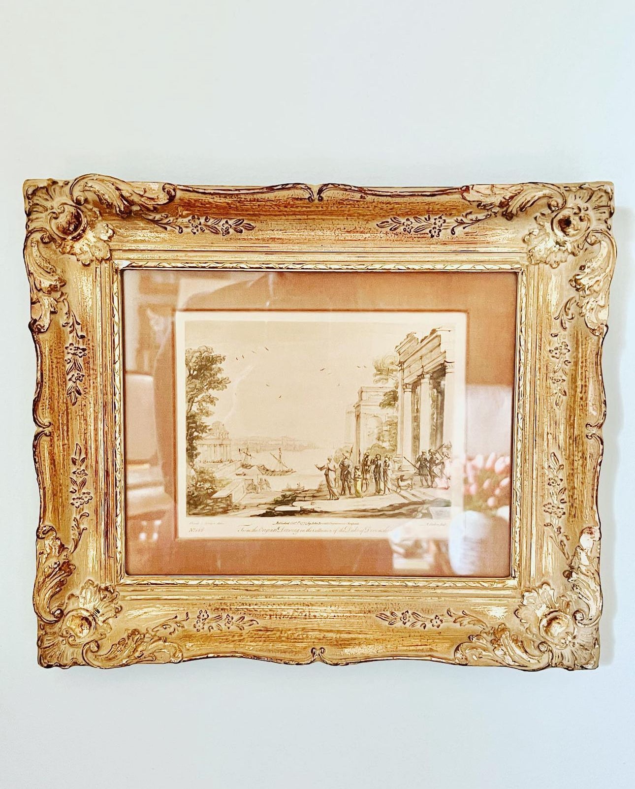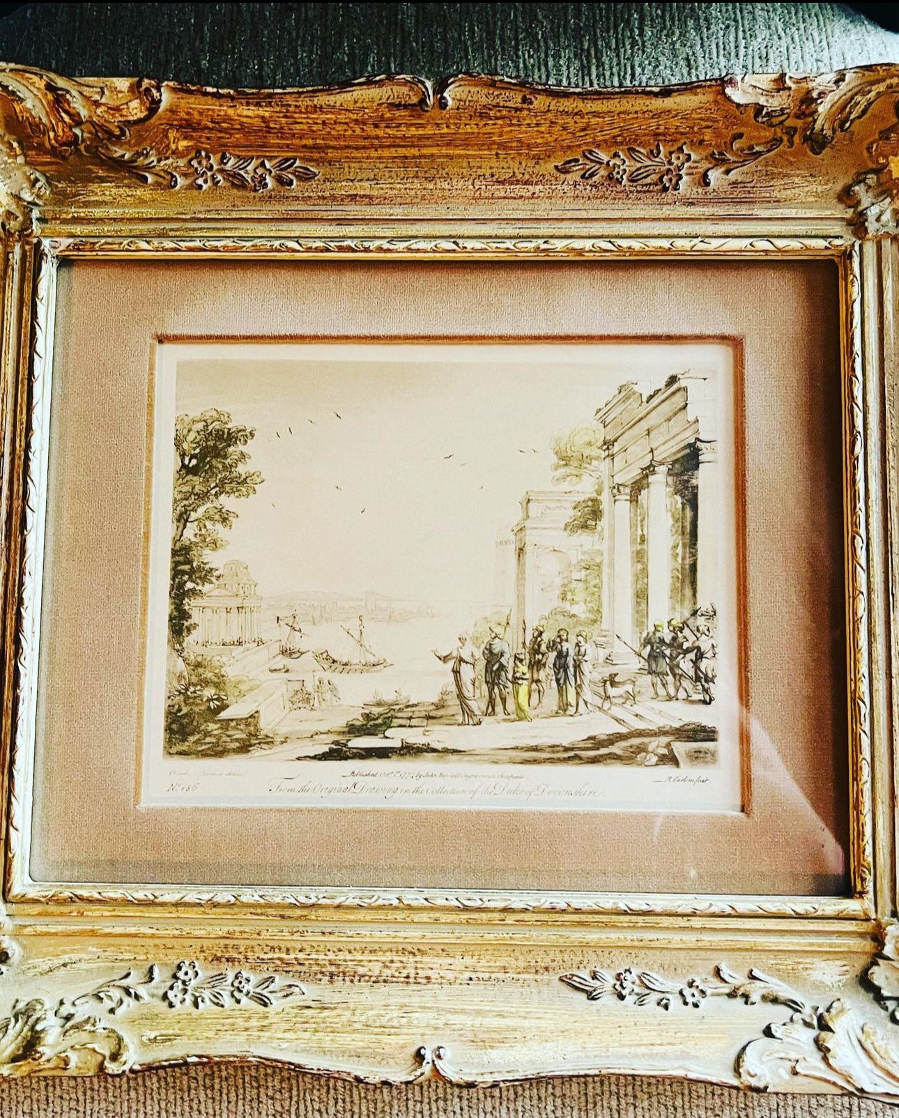 I clearly have a thing for artwork, it's my soft spot, this piece is by Richard Earlom an 18th century Mezzotint Etching after Claude Lorrain 17th century piece "A Sea View" the details are stunning, from the ornate frame to the velvet mat.. it is surely a piece to treasure.
